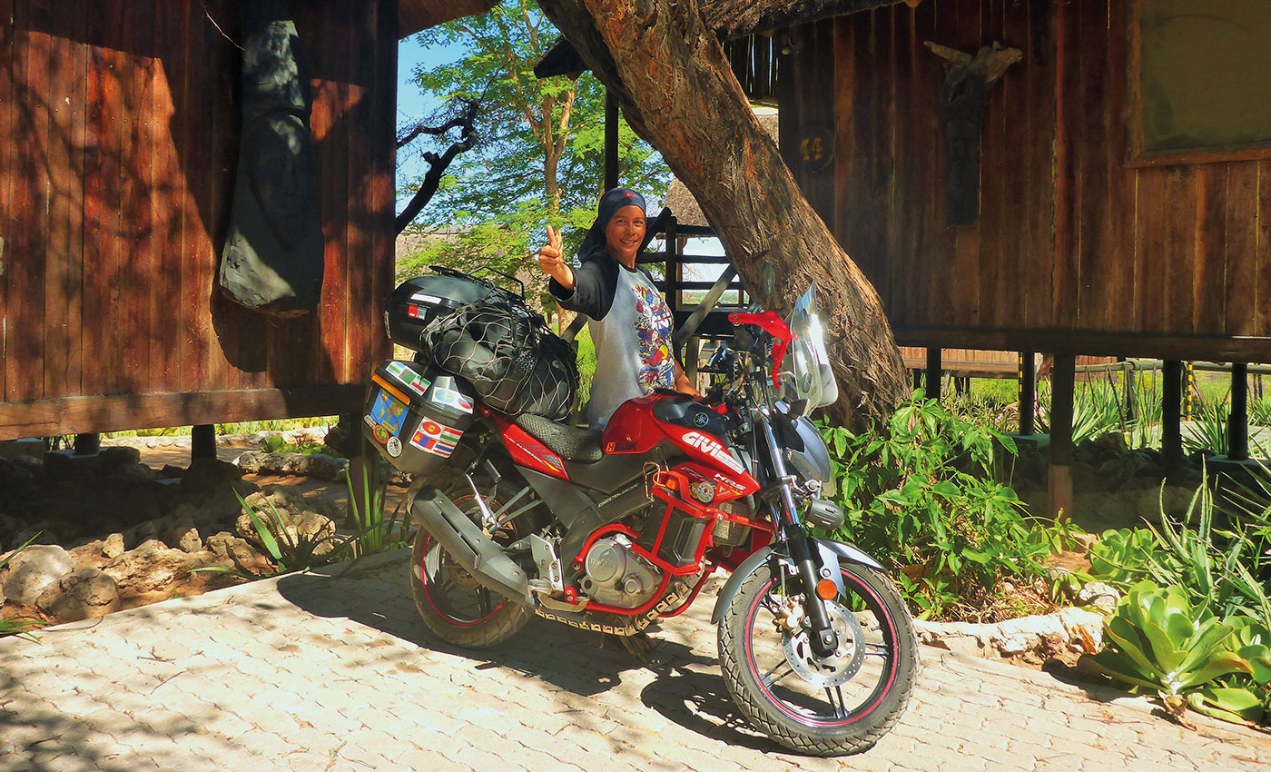 Più tardi nel pomeriggio, ho iniziato a sentire un po ‘di vento e ho deciso di fermarmi per pranzo a Mariental. Mi sono fermata in un’area di sosta. Il sedere mi faceva troppo male e le mani erano insensibili dopo il lungo viaggio senza soste. Mentre mi godevo il pranzo al sacco, vidi un ragazzo scalzo che correva verso di me. Si sedette sulla panchina opposta e mi guardò con gli occhi tristi. Dopo un po’, il ragazzo iniziò a frugare nel bidone della spazzatura. Trovò una bottiglia di Coca non finita e la bevve. Continuò a scavare e riuscì a trovare una scatola di latte. Scosse la scatola quasi vuota e la strappò per riuscire a leccare il latte rimanente. Stavo assistendo a tutto questo come se guardassi un dramma in TV.Mi si è spezzato il cuore per questo ragazzo. Soprattutto quando mi ha guardato di nuovo e ha chiesto: “Hey, puoi comprarmi qualcosa da mangiare?” Non riuscivo più a trattenere le lacrime, ma non volevo piangere di fronte a lui. In fretta mi infilai il casco, aprii il mio bauletto, presi un pacchetto di biscotti e un po’ di soldi e li feci scivolare nella mano del ragazzo. Il ragazzo corse velocemente da un altro bambino, che credo fosse suo fratello. Continuai a guidare con le lacrime che scorrevano lungo la faccia, ricordando ciò che avevo appena visto. Sono sicura che questo non sarà il primo e ultimo dramma che vedrò qui in Africa.