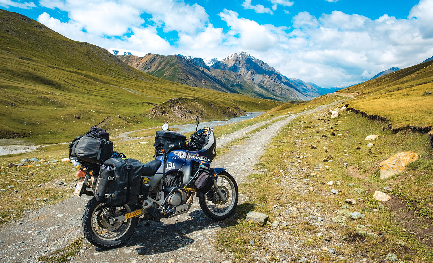 Risalire il passo dei 4000 m è stata dura. Nevicava, il mio motore faceva fatica per la mancanza di ossigeno, ma mi stavo godendo la vista e la corsa! Erba, ghiaia, fiumi, montagne, montagne, neve, freddo, terreno difficile, potenza del motore insufficiente e vista fantastica, questo passo ha tutto! Scendendo dall’altra parte, sono entrato in una bella valle! Ha smesso di nevicare, il cielo si è un po’ schiarito e di tanto in tanto il sole ha potuto gettare i suoi ultimi raggi sul fiume serpeggiante. Questo deve essere il posto perfetto per accamparsi. Allora facciamolo e accampiamoci per la giornata!